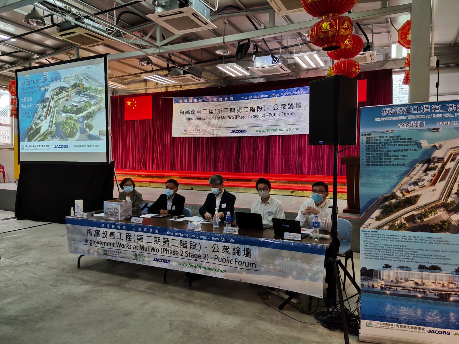 The Improvement works at Mui Wo (Phase 2 Stage 2) Public Forum was held on 30 Oct 2021. With public views collected from the previous public consultations, analysis and further studies have been carried out. The latest design scheme were presented in the Public Forum. The Forum was attended by about 100 members of the public, and attendants generally supported the project to commence as soon as possible.